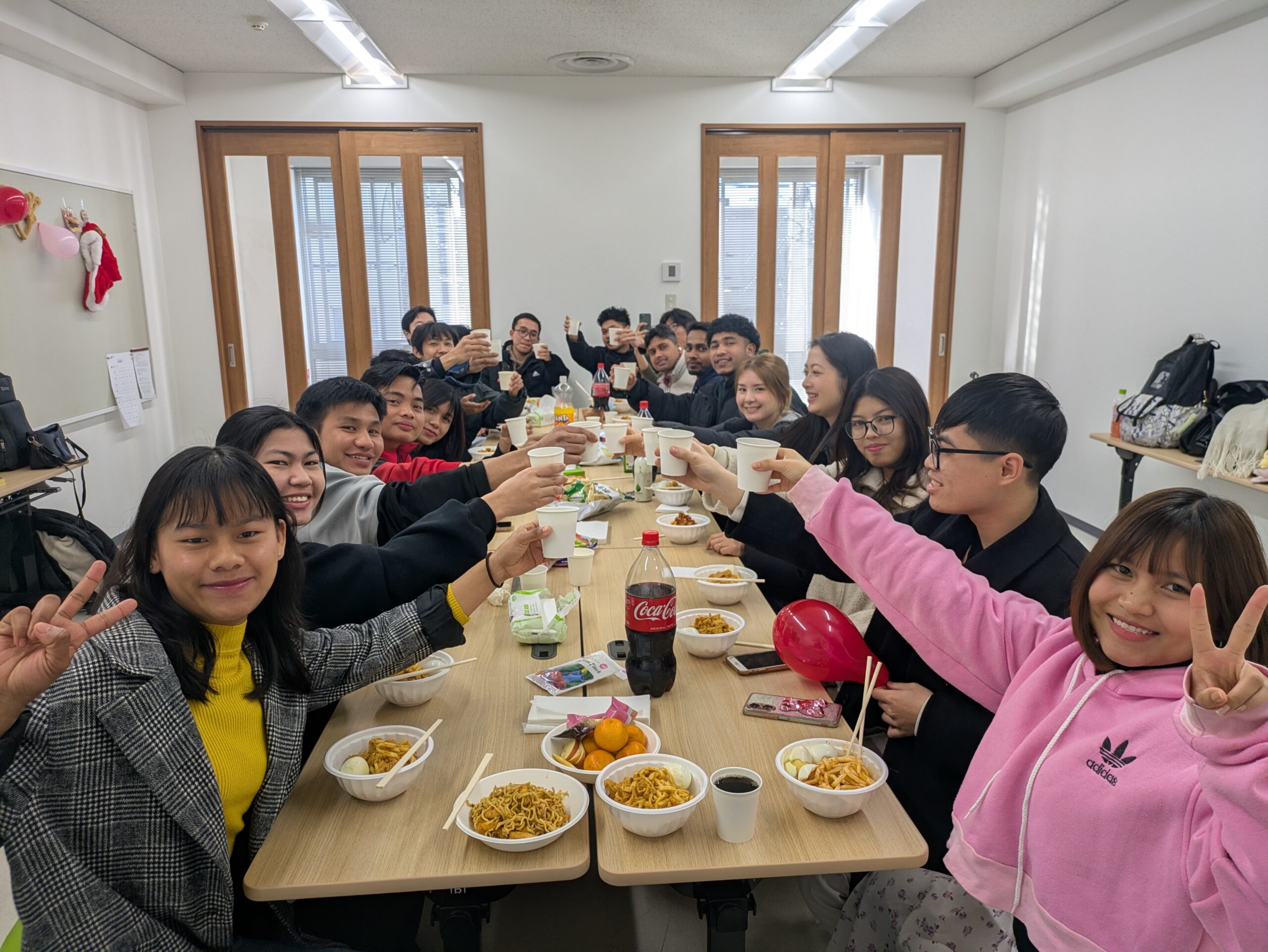 このクラス忘年会は、クラスで決まったリーダーを中心に、買い物や予算の清算、企画・準備を学生の力だけで行っています!みなさんの企画力に拍手!👏
